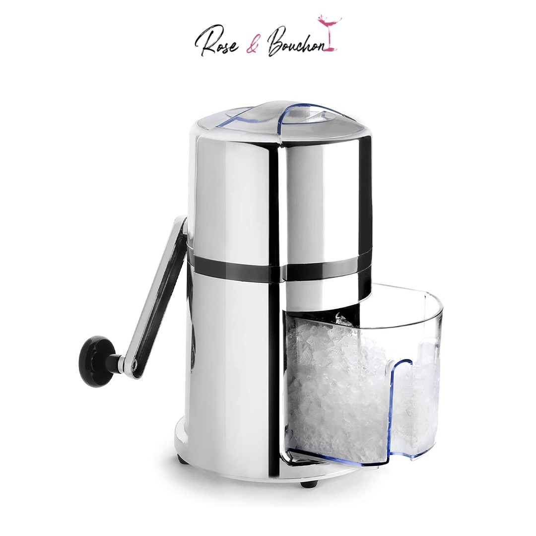Broyeur à glace manuel Matériau : acier inoxydable/plastique Dimensions : 16cm x16cm x26cm Idéal pour les cocktails et les boissons. Le récipient à glace contient deux tasses de glace pilée Coupe à glace et lames en acier inoxydable séparées Des emporte-pièces tranchants en acier inoxydable écrasent la glace pour obtenir une consistance parfaite Conception Eurostyle légère et compacte Respectueux de l’environnement N’utilise pas d’électricité Plus facile à utiliser et à nettoyer que les broyeurs à glace électriques.