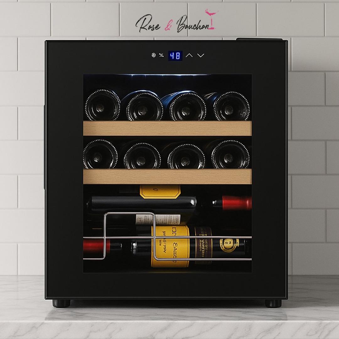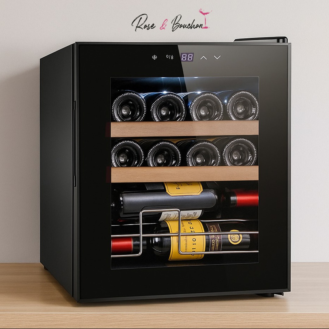 La cave à vin 12 bouteilles – réf. 69700 de la marque Lacor s’impose comme une solution idéale pour les amateurs de vin désireux de combiner performance, style et compacité. Grâce à son système de refroidissement par compresseur et ses réglages électroniques précis, elle offre un environnement stable et optimal pour le vieillissement ou la mise à température de vos vins préférés. Capacité : jusqu’à 12 bouteilles de vin standard (0,75 L). Plage de température : réglage entre 5 °C et 18 °C selon les besoins (conservation ou service) Fonctionnement silencieux & anti-vibrations : conçu pour limiter les nuisances sonores et préserver vos bouteilles des oscillations indésirables. Éclairage intérieur LED : met en valeur tout en minimisant l’exposition lumineuse. Porte vitrée en verre trempé : design moderne avec protection contre les UV. Clayettes extractibles (bois / métal selon version) : pour un rangement pratique et une gestion aisée des bouteilles. Finitions élégantes : combinaisons acier inoxydable, verre noir, lignes modernes. Pieds réglables : pour assurer une stabilité parfaite même sur sols irréguliers.
