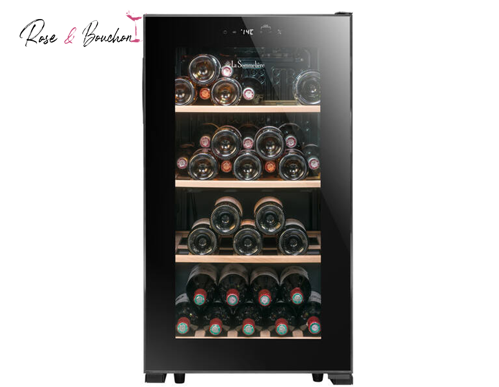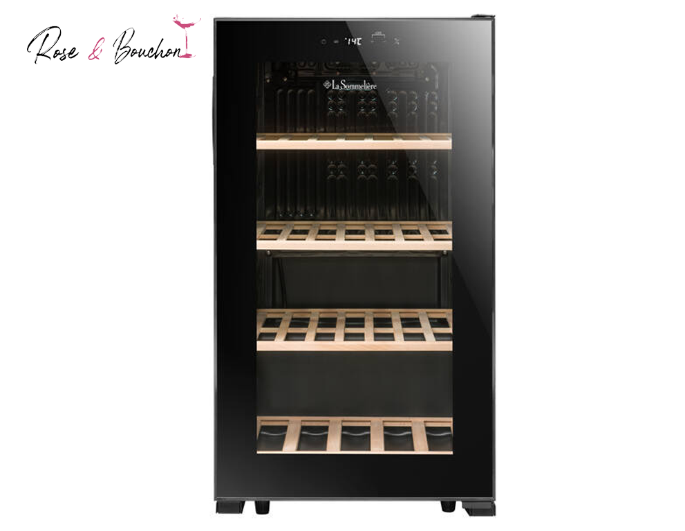 Cave de service LS52BLACK La cave de service LS52BLACK offre une capacité de stockage de 52 bouteilles* de vin maximum. Simple zone, vous pouvez régler la température entre 5 et 20°C. Moderne, la cave laisse apparaître votre collection de vin au travers de sa porte vitrée en double vitrage et met les bouteilles en valeur grâce au bois des clayettes qu'elle contient (3 clayettes fixes et 1 demi-clayette en bois de hêtre incluses). Silencieuse et performante Classée F, la cave LS52BLACK a une faible consommation énergétique pour une utilisation plus intuitive et intelligente. Son faible niveau sonore de seulement 36 décibels, lui permet de s'intègrer en toute discrétion dans vos pièces de vie. Les atouts de la LS52BLACK La cave de mise à température LS52BLACK bénéficie de nombreux avantages, comme par exemple : Niveau sonore faible de seulement 36 décibels Consommation énergétique réduite, classe F Panneau de contrôle intégré à la porte : plus besoin d'ouvrir la porte pour effectuer les réglages de la cave ! Une sécurité enfant avec verrouillage du panneau de commande ; Design moderne noir avec poignée discrète intégrée ; Deux pieds réglables à l'avant ; Des roulettes à l'arrière ; Éclairage intérieur LED ; Une excellente répartition du froid ; Système anti-vibration ; Quelles autres caves à vin de service ? La Sommelière dispose d'une belle et grande gamme de cave de service et vous permet ainsi de faire votre choix sereinement en fonction de vos goûts et vos besoins : Vous avez plusieurs types de vin ? Découvrez nos caves double zone de température : Cave à vin double zone (ref. LS102DZBLACK) ; Vous avez une cuisine aménagée ? Découvrez nos caves encastrables : Cave à vin encastrable (ref. LSBI28B) ; *La capacité annoncée est mesurée selon le standard européen EN62552. Ce standard est calculé avec des bouteilles 75cl type bordeaux tradition. Tout autre type de format de bouteilles ainsi que l’ajout de clayettes réduiront considérablement la capacité de stockage. La capacité maximale est calculée avec un nombre de clayette définie qui varie selon les modèles. Votre cave à vin ne dispose pas d’accessoires compatibles. Vous souhaitez cependant remplacer une clayette abimée ou en ajouter une clayette additionnelle* ? Découvrez les pièces détachées disponibles sur le site Interfroid Services. *L’ajout de clayette n’est pas possible sur tous les modèles, vérifier la possibilité avant tout achat. NB: Dans un souci d'amélioration continue, l'affichage de la température a été modifié pour afficher la température réglée. Selon le numéro de série de votre appareil (antérieure au SN 19230000) il se peut que votre cave à vin ne respecte pas cet affichage et indique la température réelle.