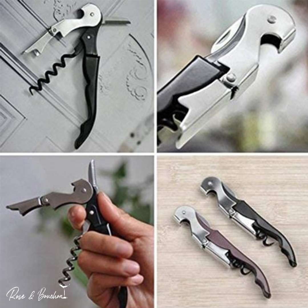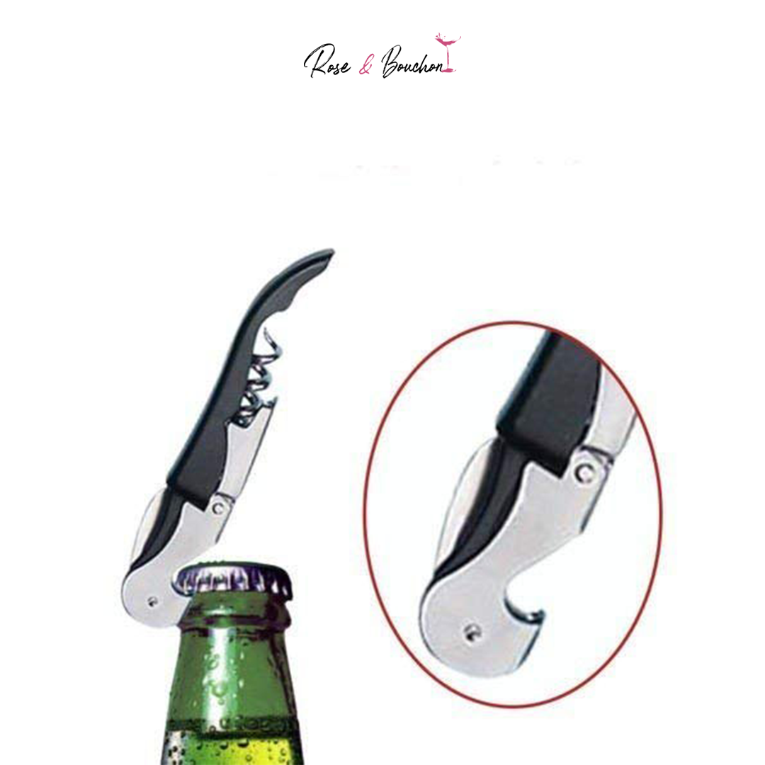 Tire bouchon Sommelier Professionnel : Cet ouvre-Bouteille est idéal pour un usage quotidien En apprenant la mécanique derrière le double pivot à charnière, vous pourrez retirer les bouchons de vin en quelques secondes. Une fois le bouchon retiré, il vous suffit de fermer le tire-bouchon et de le ranger jusqu’à la prochaine fois que vous souhaitez ouvrir une bouteille. Si vous voulez nettoyer l’ouvre-vin, essuyez-le simplement avec un torchon.